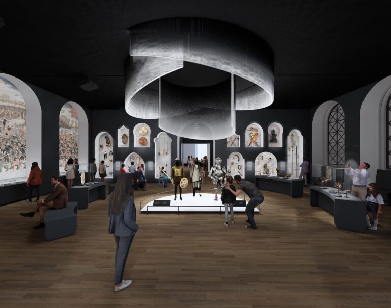 The core of the Museum’s collection of arms and armor is the John Woodman Higgins Armory Collection. Previously housed at Worcester’s Higgins Armory Museum until its closure, the collection was acquired by WAM in 2014. Now, this reimagined new installation will allow for the majority of these beloved treasures to be on display, using art to boldly redefine how we encounter them. The galleries are curated by Jeffrey L. Forgeng, WAM’s Higgins Curator of Arms & Armor and Medieval Art—who has curated the Higgins Armory Collection since 1999—to highlight the craftsmanship, technological innovation, and cultural significance of arms and armor throughout history.